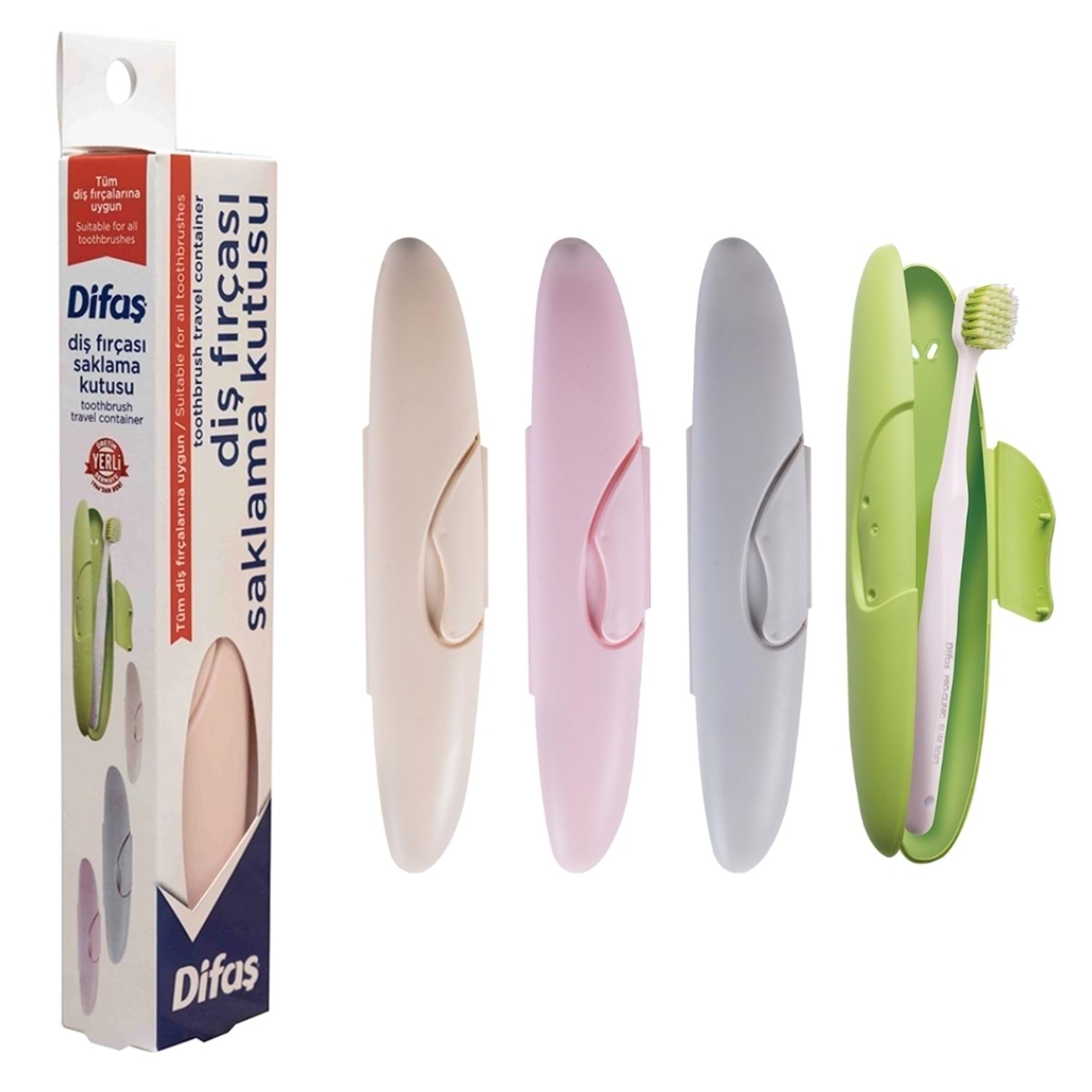 Difaş diş fırça saklama kutusu, her marka ve model diş fırçası kullanımı için uygundur. Özel olarak tasarlanmış hava kanalları sayesinde diş fırça kıllarının kurumasına katkı sunar. Evde, iş yerinde, seyahatte rahatlıkla kullanıma uygundur.
