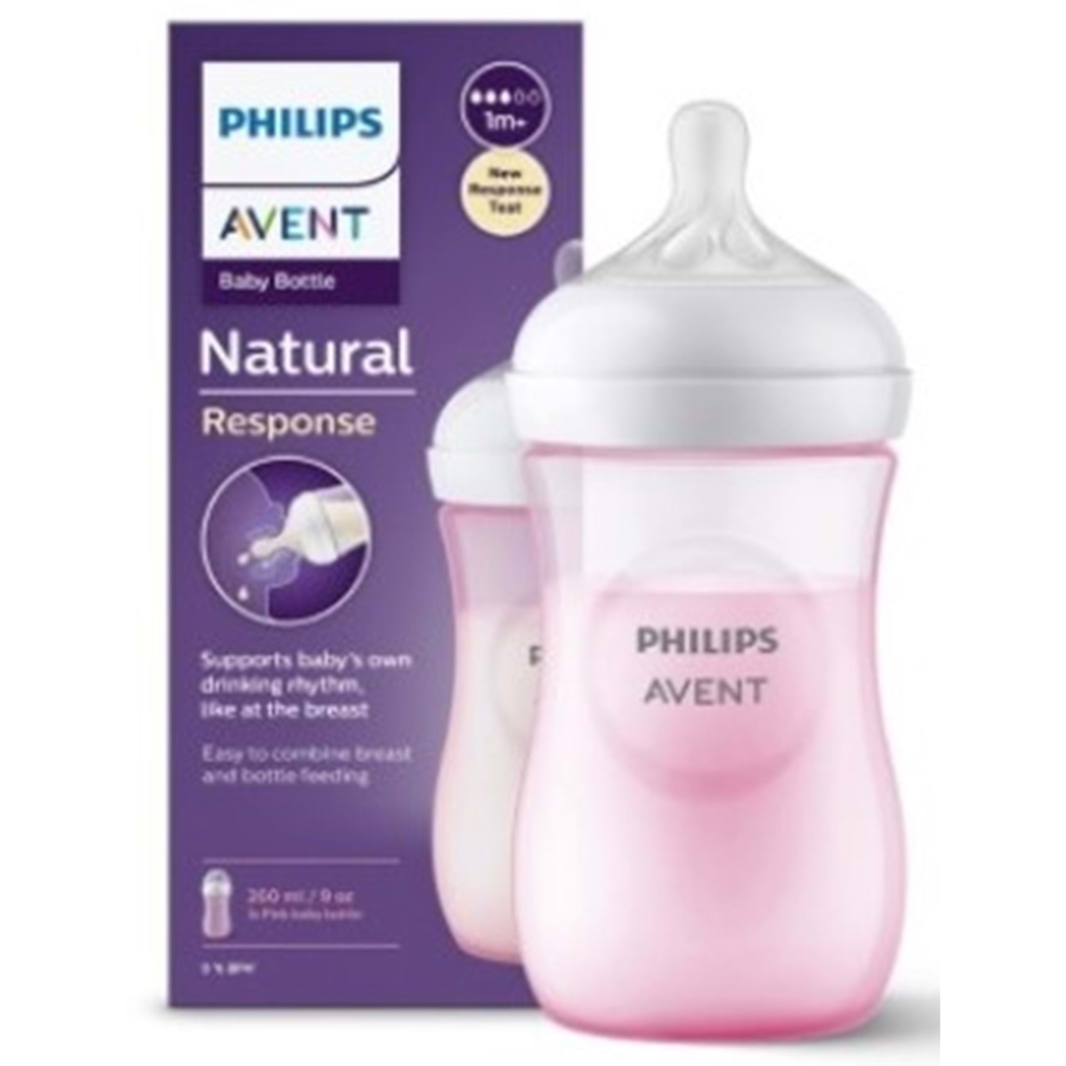 Philips Avent Doğal Tepkili Damlatmaz PP Biberon, 260ml, 1+ Ay, Pembe