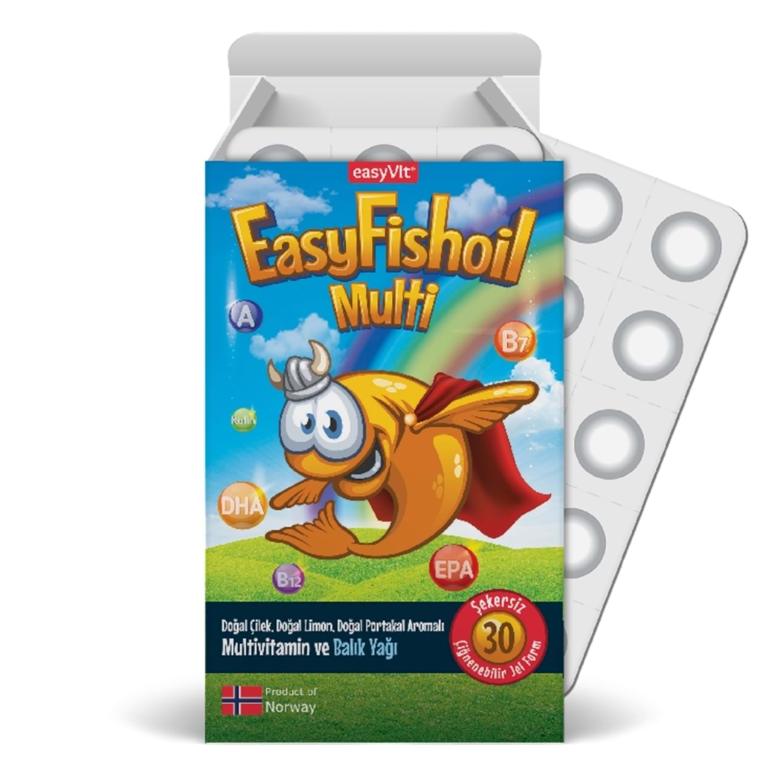 EPA ve DHA ile birlikte multivitamin içeren balık yağı takviyesi Kolayca tüketilen çiğnenebilir jel form Doğal çilek, doğal limon ve doğal portakal aromalı Şekersizdir. Koruyucu, domuz yağı ve katkıları içermez Hava ve neme karşı bariyer oluşturan tekli paketleme teknolojisiyle ilk günkü gibi hijyenik Patentli ConCordix teknolojisi Norveç'te üretim